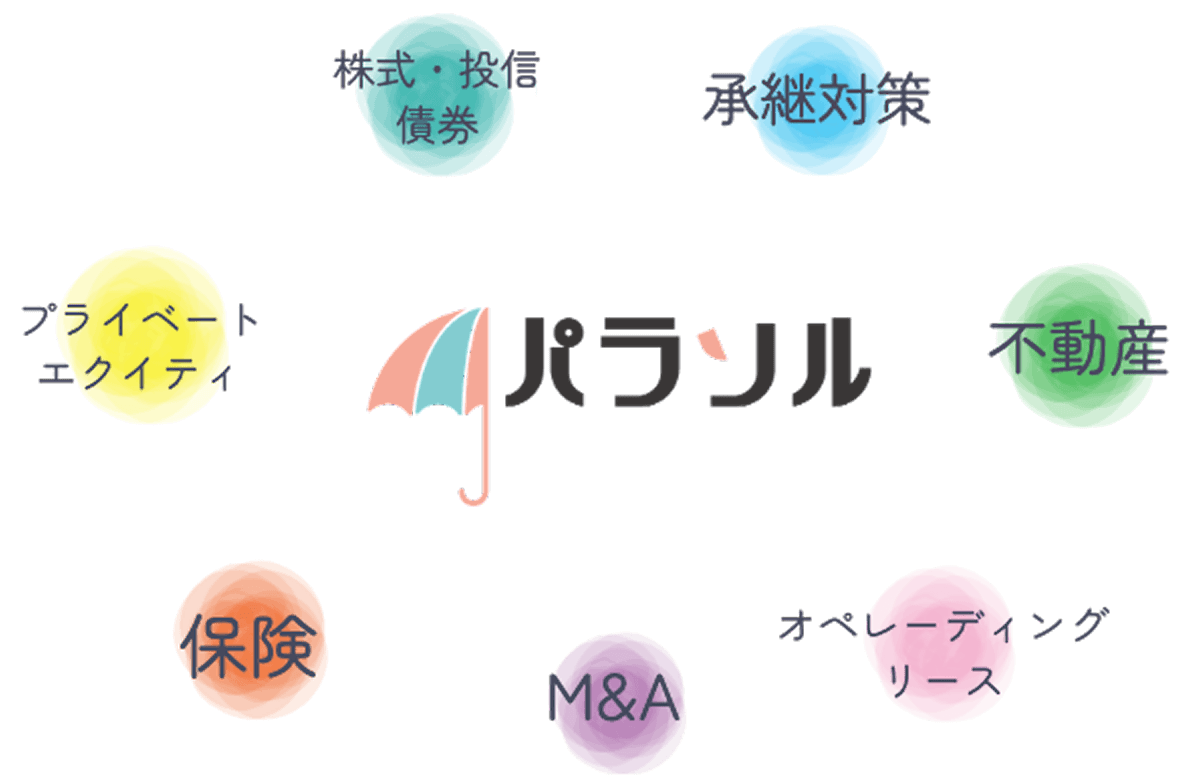 パラソルの担当者は社内外の専門家の叡智を集結し、マーケット・経営・税・諸制度を横断した体制を構築し、お客様に対し包括的なバックアップをおこなっています。
